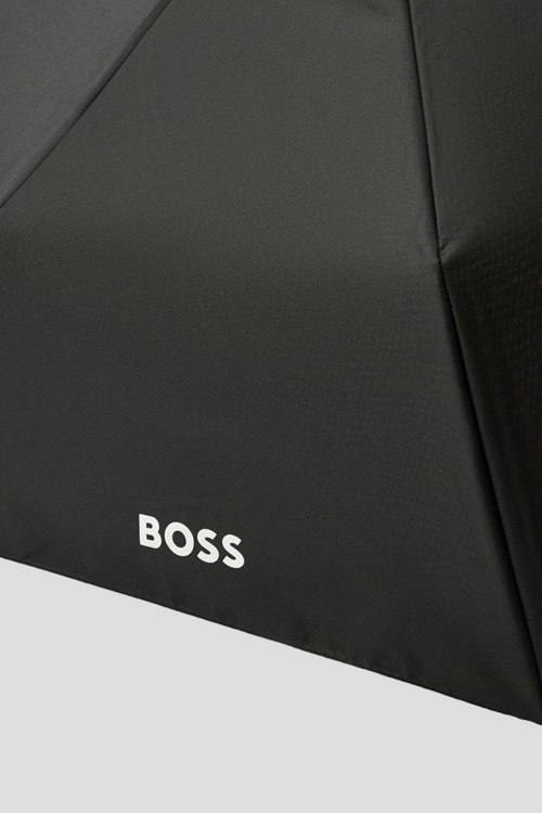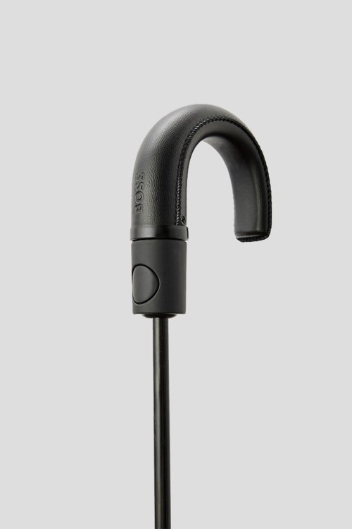 Детали: Мужской черный зонт от Hugo Boss (Хуго Босс). Влагоотталкивающий материал, круглая форма, контрастная внутренняя часть, изогнутая ручка, автоматический механизм сборки, чехол в комплекте. Размер: 36 х 120 см (длина – диаметр купола)