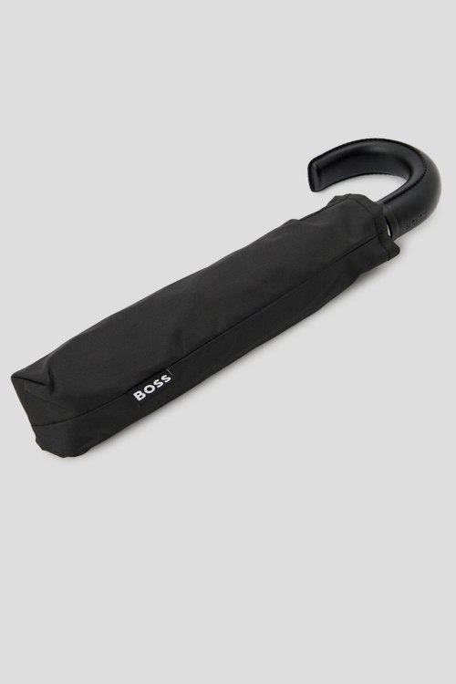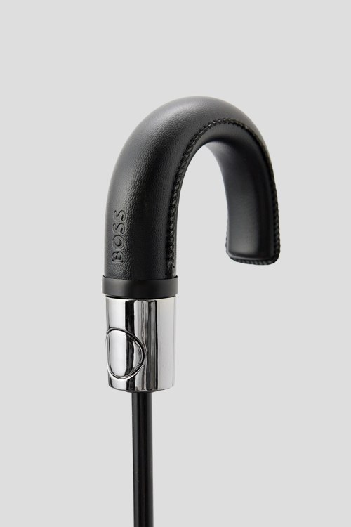 Детали: Мужской темно-серый зонт от Hugo Boss (Хуго Босс). Влагоотталкивающий материал, круглая форма, выгнутая ручка, автоматический механизм сборки, чехол в комплекте. Размер: 36 х 103 см (длина – диаметр купола)
