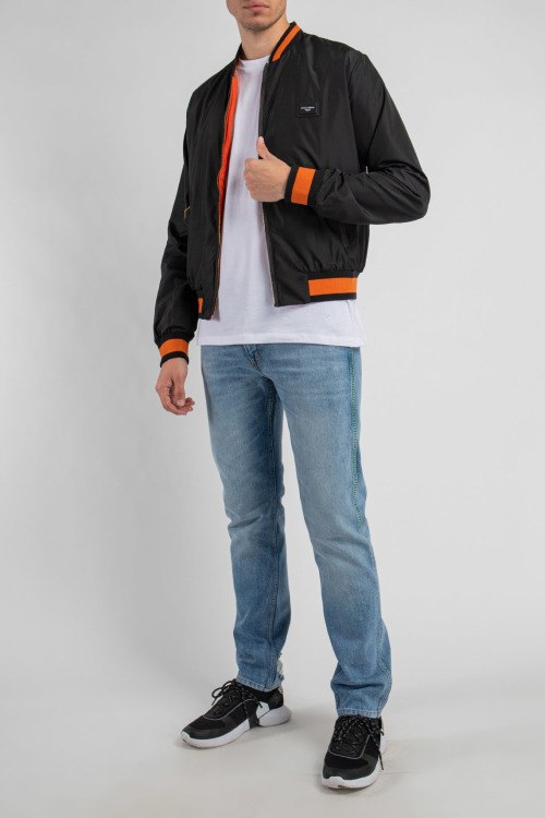 Мужская черная куртка-бомбер от Dolce & Gabbana (Дольче энд Габбана). Воротник в рубчик, застежка на молнию, длинные рукава, низ изделия и манжеты в рубчик, передние карманы на молнии, логотип на груди. Измерения для размера 48 : длинна изделия- 64 см, полуобхват груди- 57 см, полуобхват талии- 55 см,