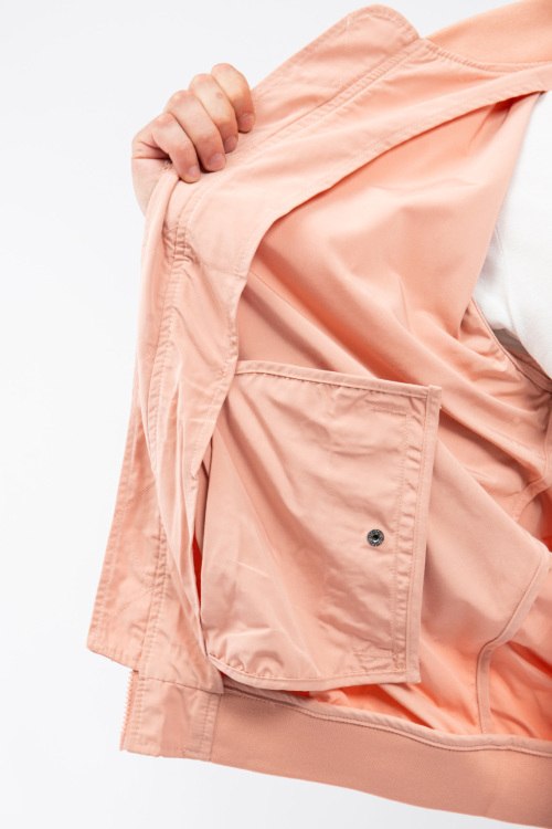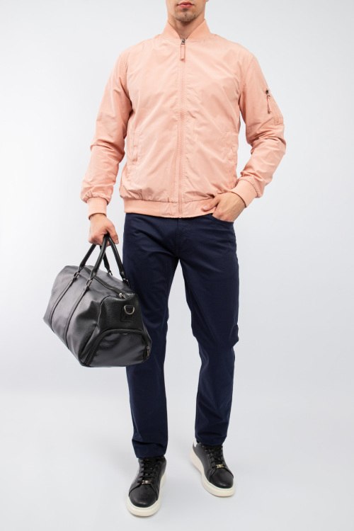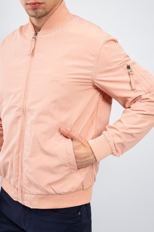 Детали: Мужской персиковый бомбер из полиэстера от Jack & Jones (Джек энд Джонс). Воротник-стойка, боковые карманы, карман на рукаве, застежка-молния, классическая длина, трикотажные манжеты и нижний край