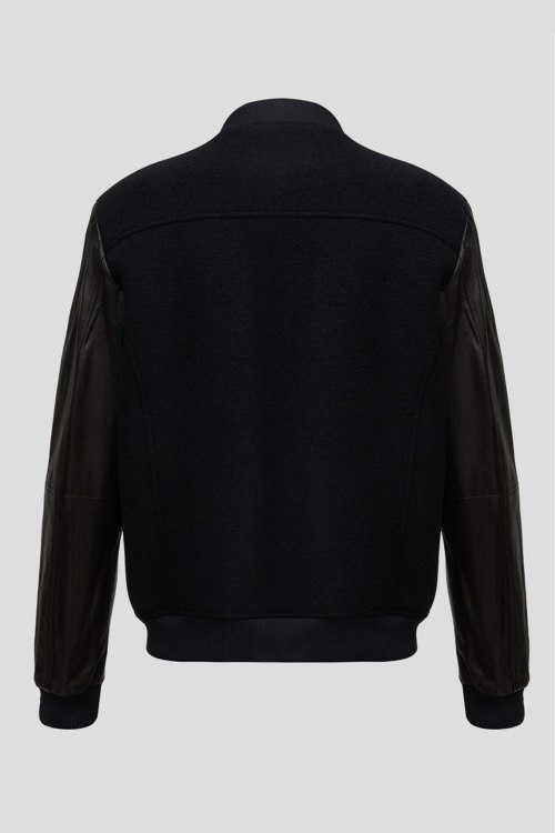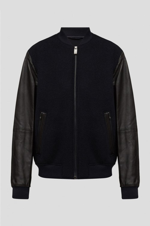 Детали: Мужская темно-синяя куртка-бомбер от Pal Zileri (Пал Зилери). Комбинация цветов и материалов, трикотажная резинка на манжетах и по низу изделия, застежка на молнию, прорезные карманы. Измерения: длина рукава: длинный, для размера 50 - 67 см, обхват груди: для размера 50 - 114 см, обхват талии: для размера 50 - 110 см, длина изделия по среднему шву спинки от горловины: для размера 50 - 68 см