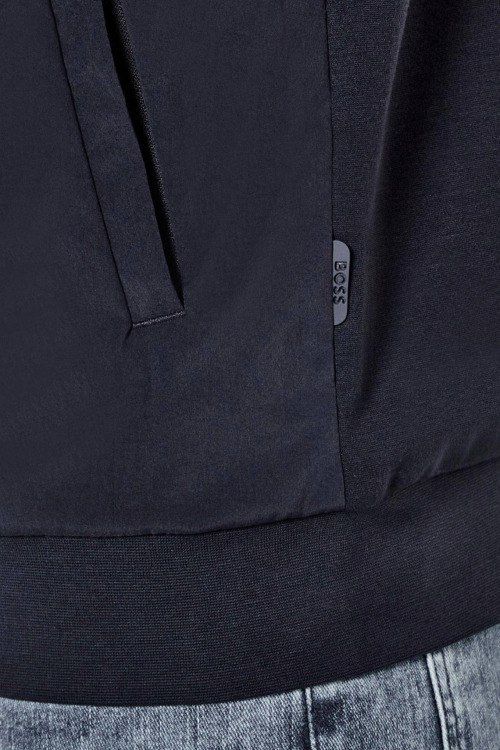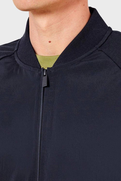 Детали: Мужской темно-синий бомбер из лиоцелла P-Skiles от Hugo Boss (Хуго Босс). Воротник-стойка, боковые карманы, застежка-молния, классическая длина, трикотажные манжеты и нижний край