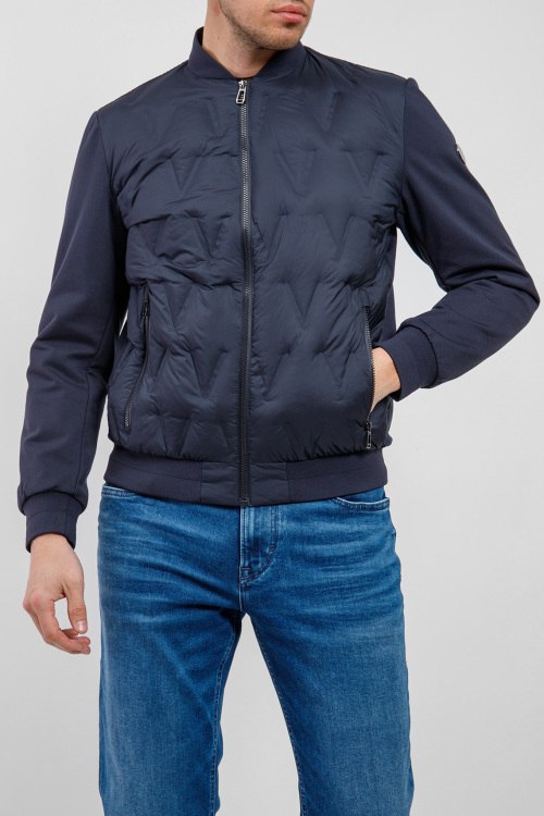 Мужской темно-синий бомбер из полиэстера от Joop! (Йооп!). Стеганый дизайн, застежка на молнию, прорезные карманы на молнии, патч-лого на рукаве, утепленная модель синтепоном.