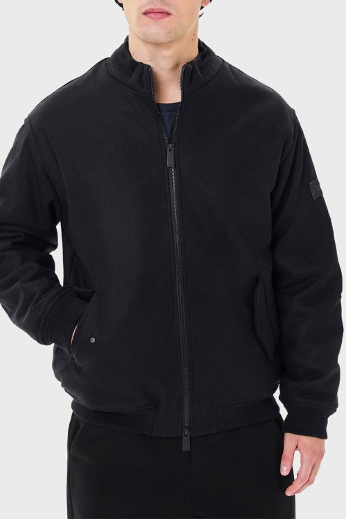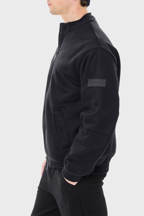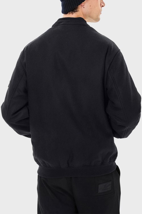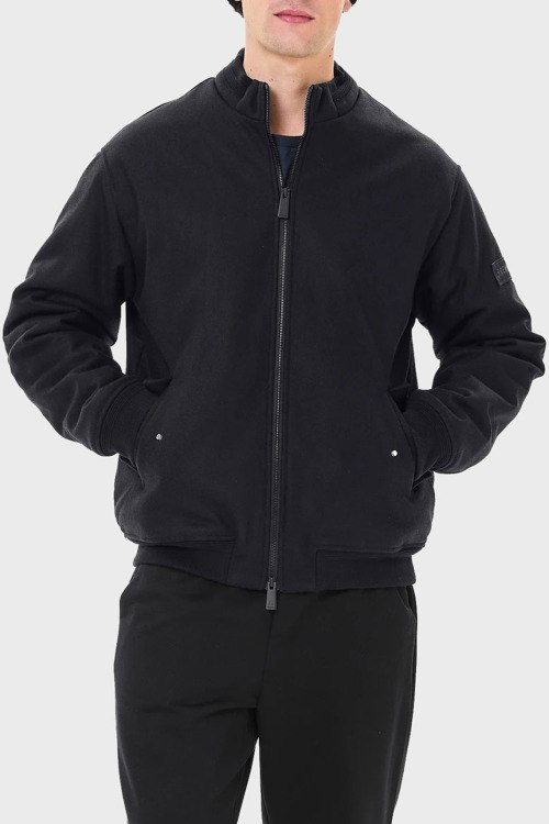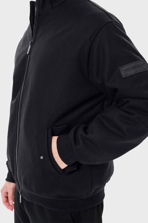 Детали: Мужской темно-синий шерстяной бомбер от Premiata (Премиата). Воротник-стойка, нашивка с логотипом на рукаве, боковые карманы, застежка-молния, классическая длина, трикотажные манжеты и нижний край