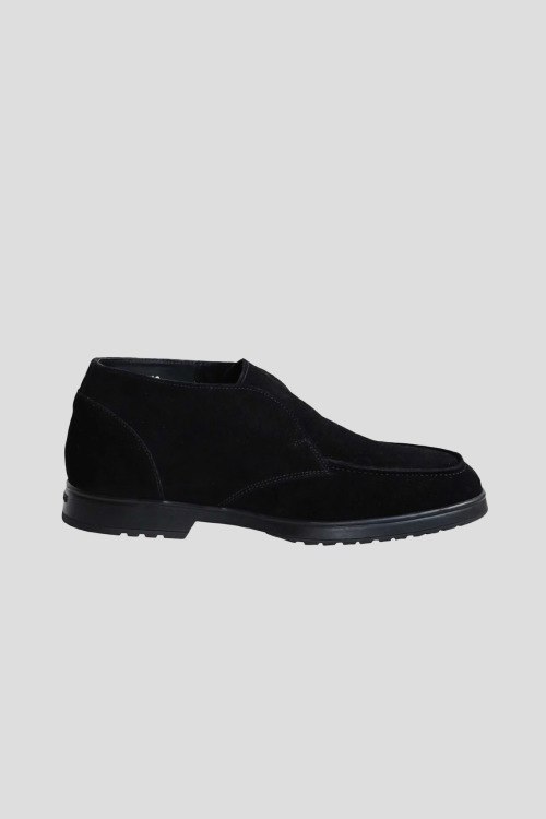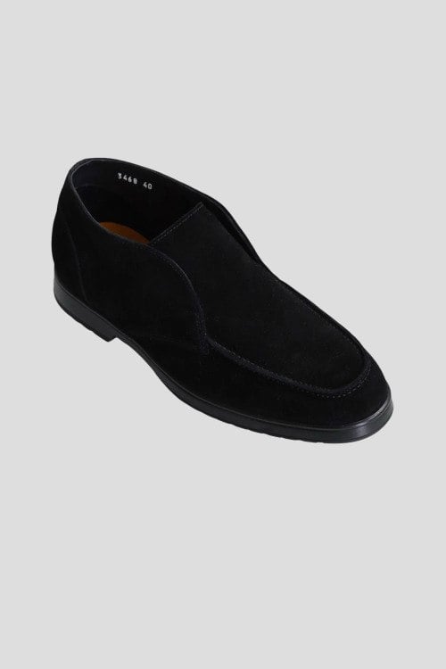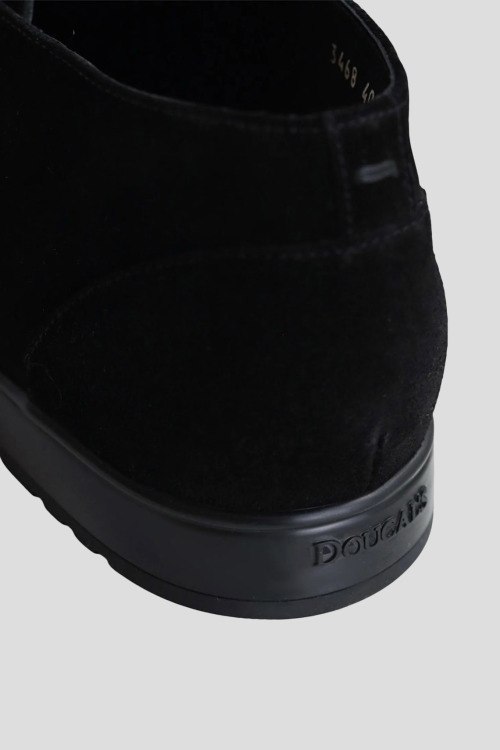 Детали: Мужские черные замшевые ботинки от Doucal's (Дукалс). Короткая модель без застежки, миндалевидный носок, кожаная стелька
