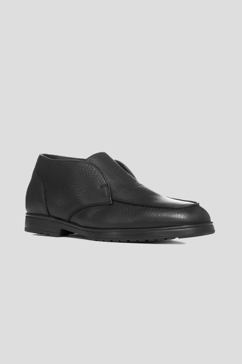 Детали: Мужские черные кожаные ботинки от Doucal's (Дукалс). Модель из зернистой кожи, без застежки, миндалевидный носок, кожаная стелька