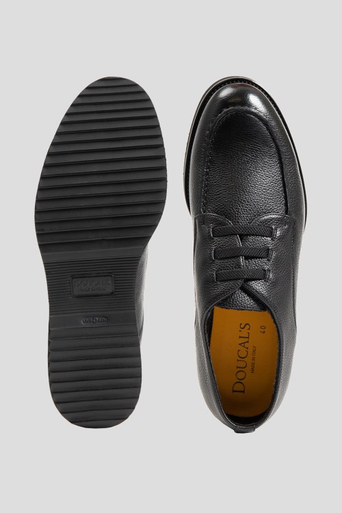Детали: Мужские черные ботинки из натуральной кожи от Doucal's (Дукалс). Закругленный носок, модель утепленная шерстью, подошва из полиуретана, кожаная стелька с логотипом бренда
