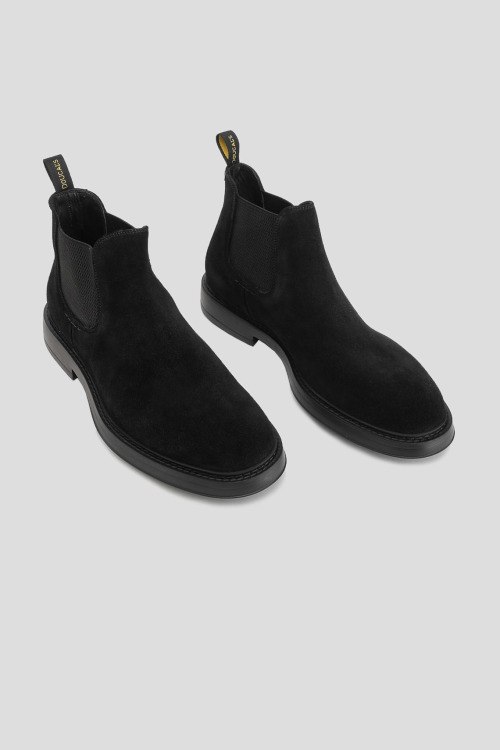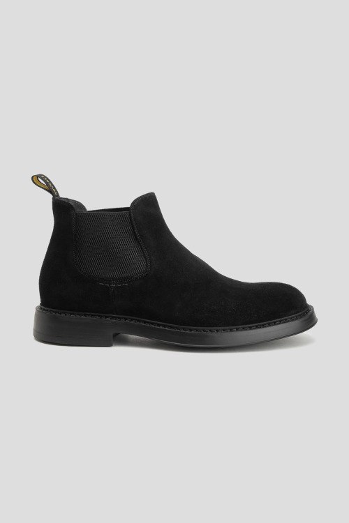 Детали: Мужские черные замшевые челсиот Doucal's (Дукалс). Эластичные резинки по бокам, брендированная петля для подтягивания сзади, закругленный носок