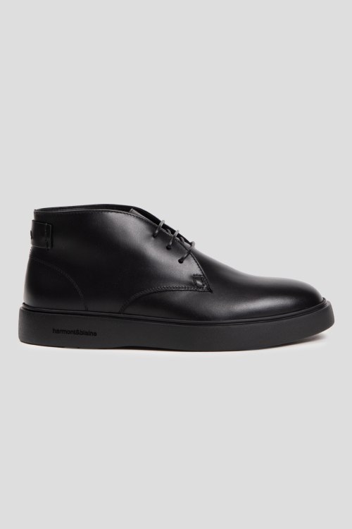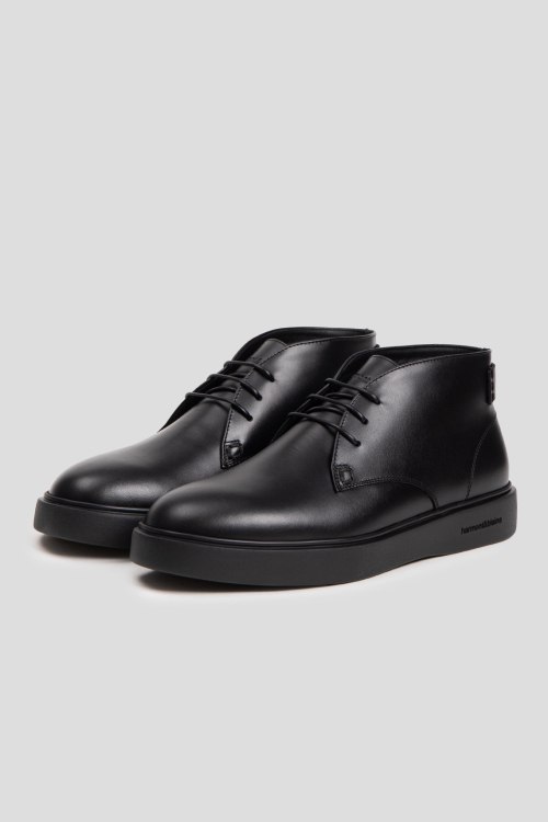 Детали: Мужские черные кожаные дезерты от Harmont & Blaine (Хармонт энд Блейн). Модель из гладкой кожи, классическая шнуровка, закругленный носок, брендированная подошва