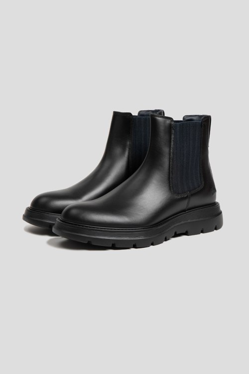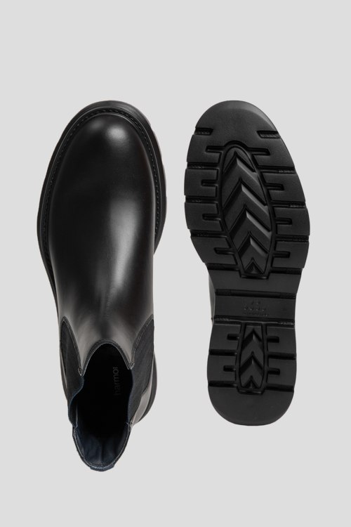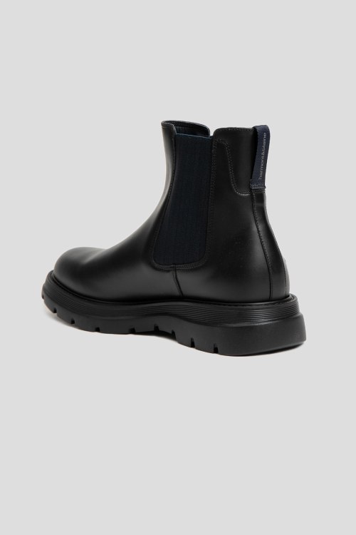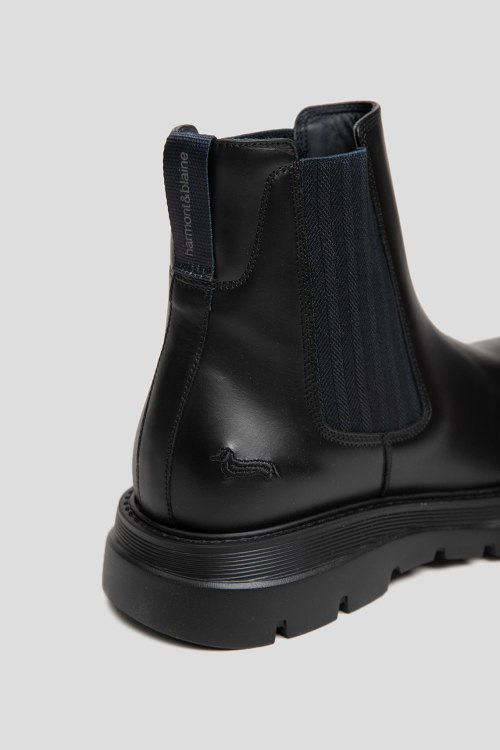 Детали: Мужские черные ботинки-челси из натуральной кожи от Harmont & Blaine (Хармонт энд Блейн). Закругленный носок, по бока эластичные вставки, рельефная подошва