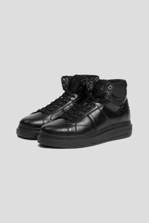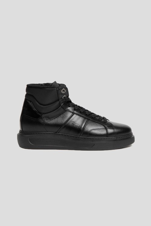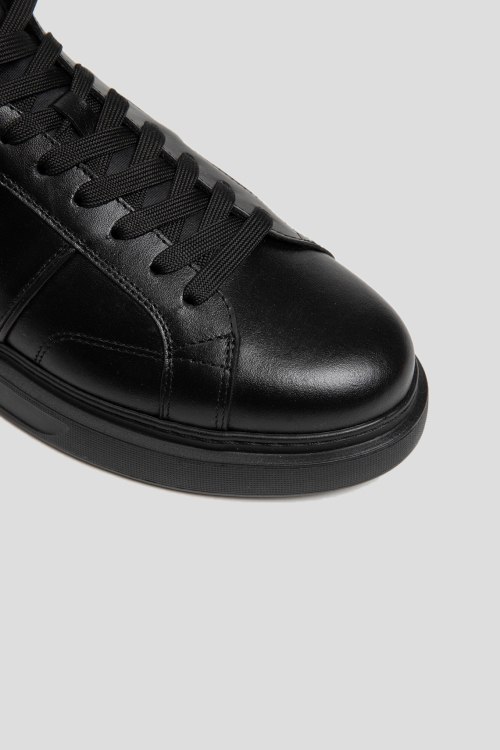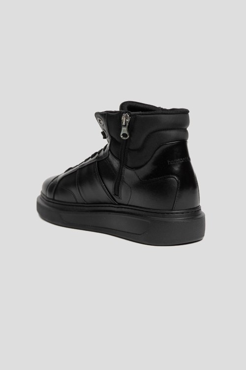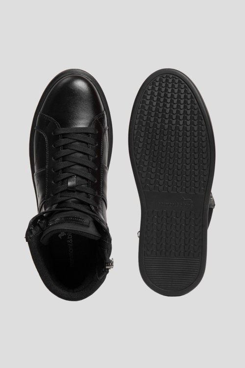 Детали: Мужские черные хайтопы из натуральной кожи от Harmont & Blaine (Хармонт энд Блейн). Закругленный носок, спереди классическая шнуровка, сбоку застежка на молнию, подошва в тон изделия