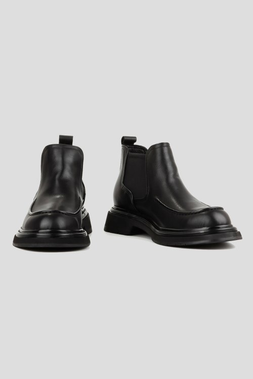 Мужские черные ботинки из натуральной кожи от Le Berdes (Ле Бердес). Закругленный носок, эластичные вставки по бокам, модель утепленная байкой, петля для подтягивания, высота каблука : 31-40 мм Замеры стельки: р. 39 (27 см),40 (27,5 см), 41 (28 см), 42 (28,5 см), 43 (29 см), 44 (29,5 см), 45 (30 см)