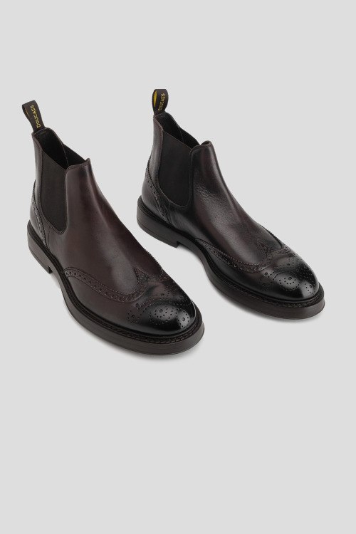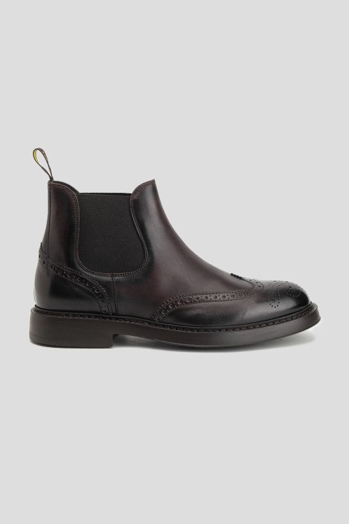 Детали: Мужские темно-коричневые кожаные челси от Doucal's (Дукалс). Модель из гладкой кожи, перфорированный узор, эластичные резинки по бокам, петля для подтягивания сзади, закругленный носок