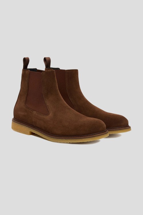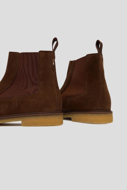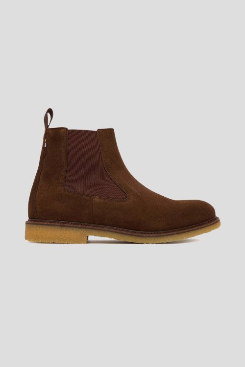 Детали: Мужские коричневые замшевые челси Kope от Hugo Boss (Хуго Босс). Эластичные вставки по бокам, петля для подтягивания сзади, закругленный носок, кожаная стелька