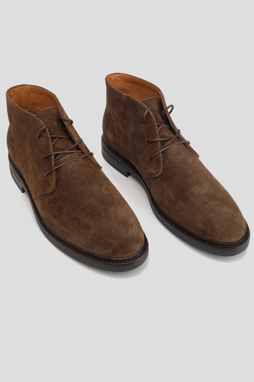 Детали: Мужские коричневые замшевые ботинки Asher Chukka от Ralph Lauren (Ральф Лорен). Тональная строчка, классическая шнуровка, закругленный носок, кожаная стелька