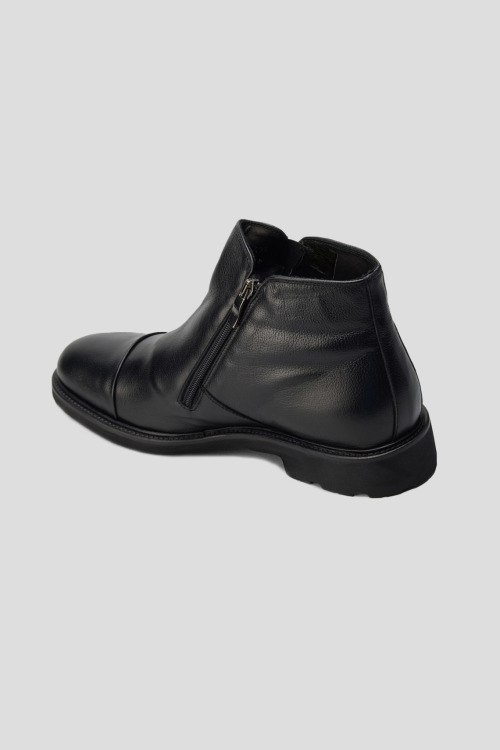 Детали: Мужские черные кожаные ботинки на меху от Alberto Ciccioli (Альберто Чичиоли). Модель из зернистой кожи, застежка-молния сбоку, миндалевидный носок, внутри на меху