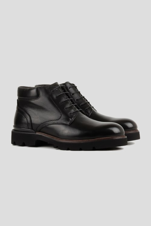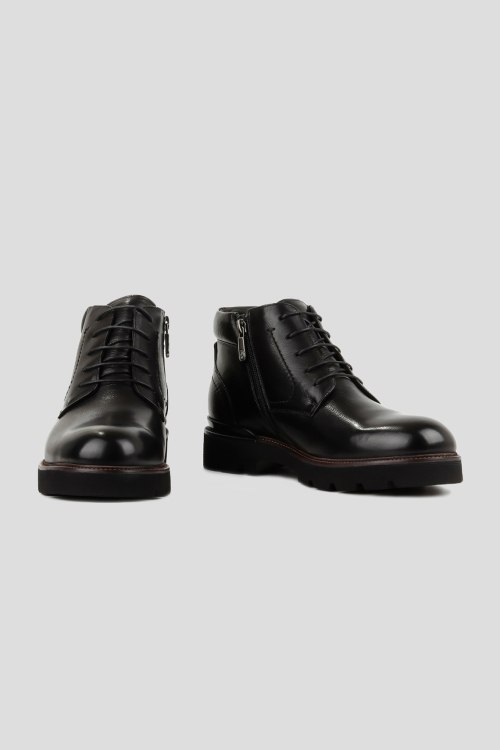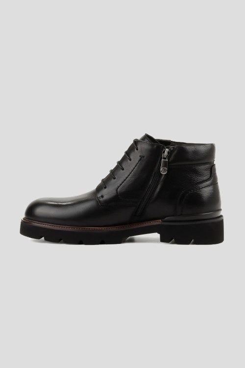 Детали: Мужские черные ботинки из натуральной кожи от Arzoni Bazalini (Арзони Базалини). Закругленный носок, спереди шнуровка, застежка на молнию, рельефная подошва, модель утепленная мехом. Высота каблука: 21-30 мм Замеры стельки: размер 39 (26,5 см), 40 (27 см), 41 (27,5 см), 42 (28 см), 43 (28,5), 44 (29 см), 45 (29,5 см)