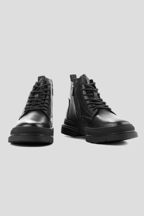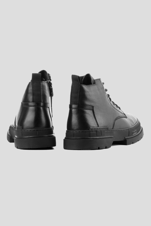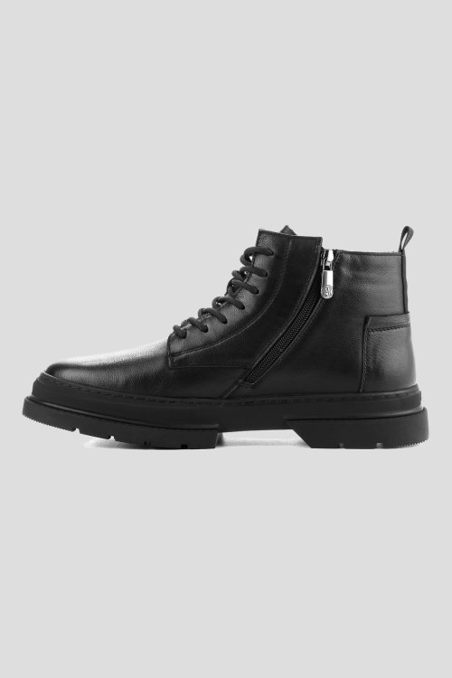 Детали: Мужские черные ботинки из натуральной кожи от Arzoni Bazalini (Арзони Базалини). Закругленный носок, спереди классическая шнуровка, сбоку застежка на молнию, рельефная подошва, петля для подтягивания, модель утепленная мехом. Измерения: длина стельки: 26 см (39)