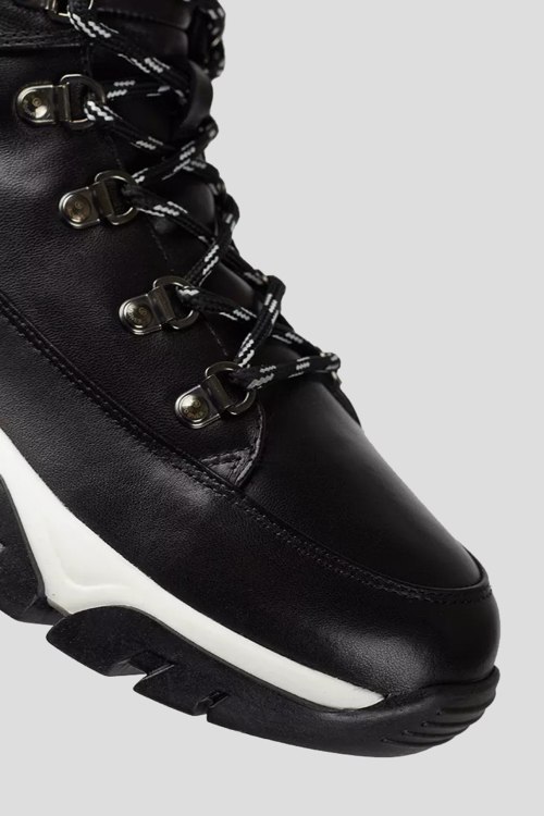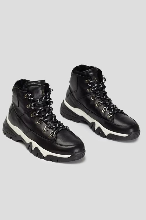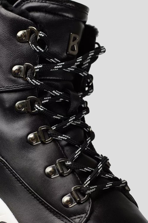 Детали: Мужские черные кожаные ботинки на меху от Bogner (Богнер). Модель из гладкой кожи, логотип на язычке, классическая шнуровка, закругленный носок, внутри на меху