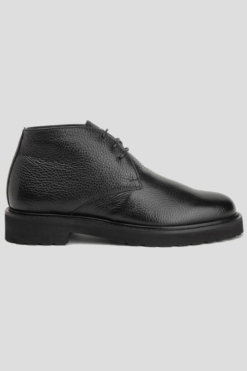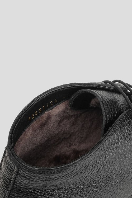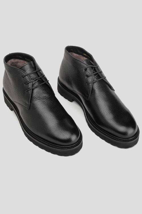 Детали: Мужские черные кожаные дезерты на меху от Brecos (Брекоз). Модель из зернистой кожи, классическая шнуровка, закругленный носок, внутри на меху