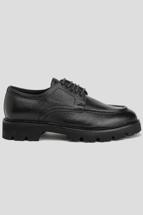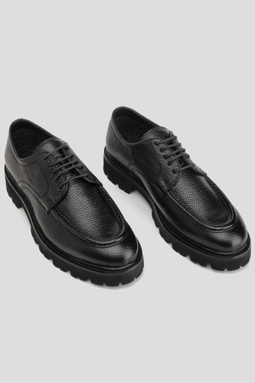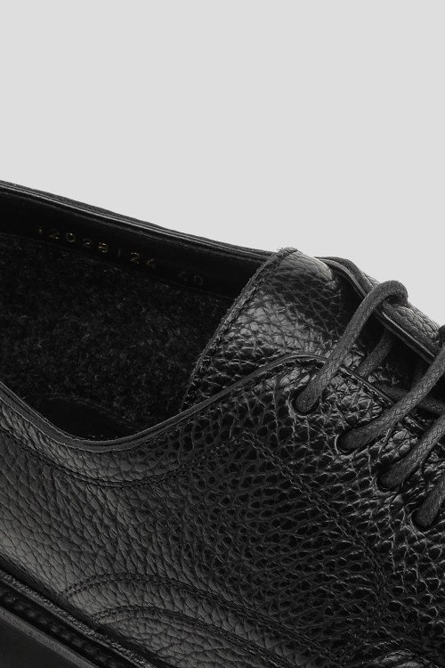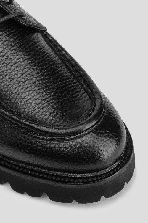 Детали: Мужские черные кожаные туфли на флисе от Brecos (Брекоз). Модель из зернистой кожи, классическая шнуровка, закругленный носок, тракторная подошва, внутри на флисе