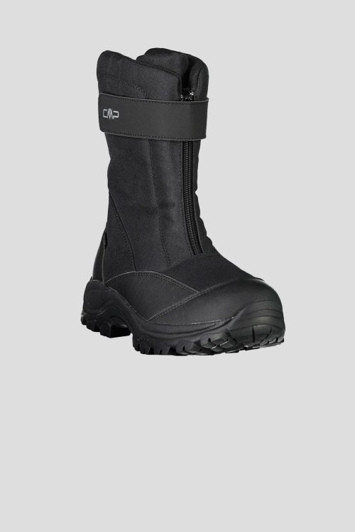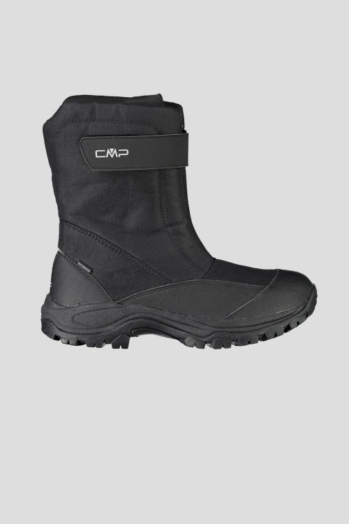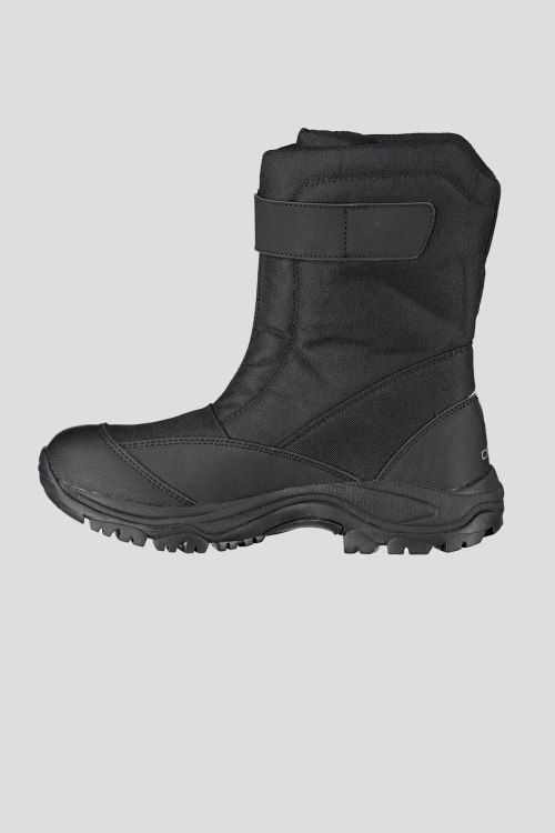 Детали: Мужские черные текстильные зимние ботинки от CMP (СМП). Высокие ботинки, идеально подходящие для длительных прогулок по снегу, благодаря водонепроницаемой мембране CLIMA PROTECT. Верхняя часть оснащена застёжкой на липучке и молнии спереди, что делает обувь удобной в использовании и обеспечивает отличную посадку по голени