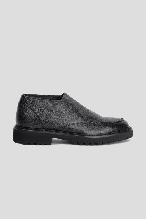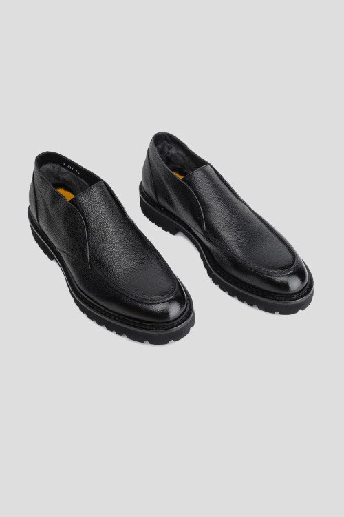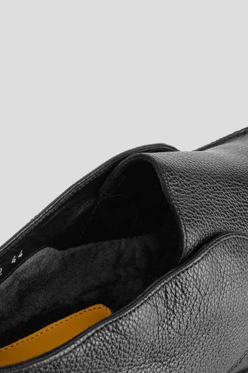 Детали: Мужские черные ботинки из натуральной кожи от Doucal's (Дукалс). Миндалевидный носок, утепленная модель мехом, рельефная подошва, без застежки