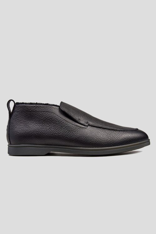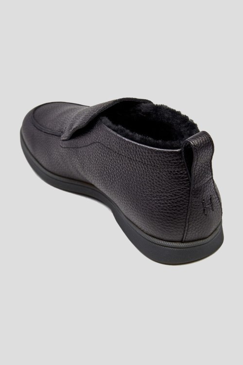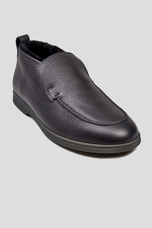 Детали: Мужские черные кожаные ботинки на меху от Henderson Baracco (Хендерсон Баракко). Модель из зернистой кожи, петля для подтягивания сзади, миндалевидный носок, внутри на меху