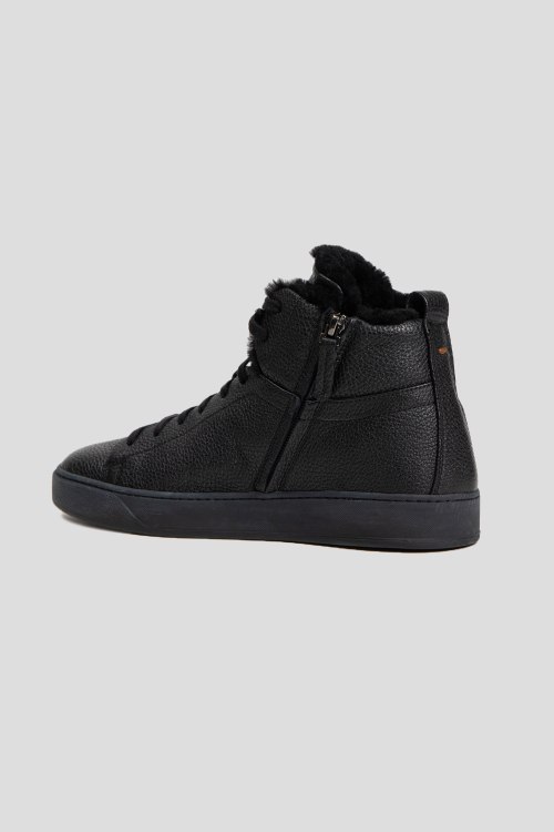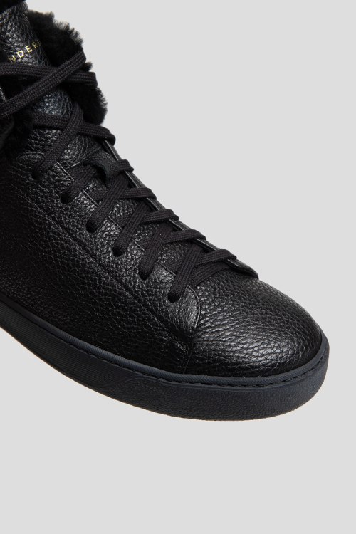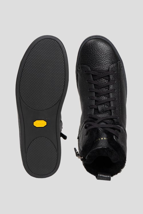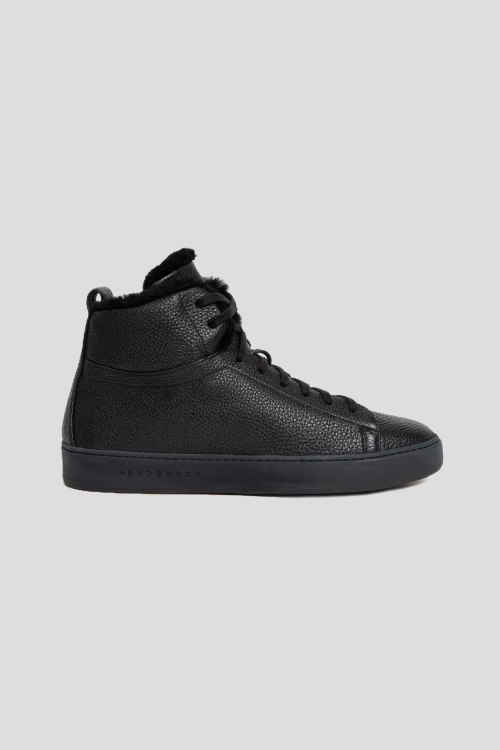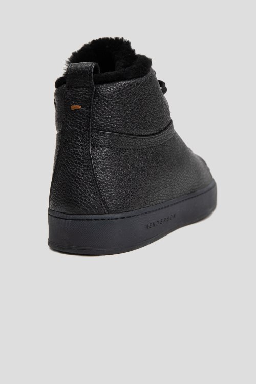 Мужские черные кожаные ботинки на меху от Henderson Baracco (Хендерсон Баракко). Модель из зернистой кожи, логотип на язычке, классическая шнуровка, застежка-молния сбоку, закругленный носок, резиновая подошва