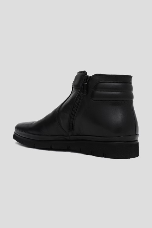 Детали: Мужские черные ботинки на меху из натуральной кожи от Lab Milano (Лаб Милано). Закругленный носок, боковая молния с внутренней стороны и стрейчевая вставка с наружной стороны. Высокая полиуретановая подохша с антискользящим рельефом. На язычке металлический патч-лого