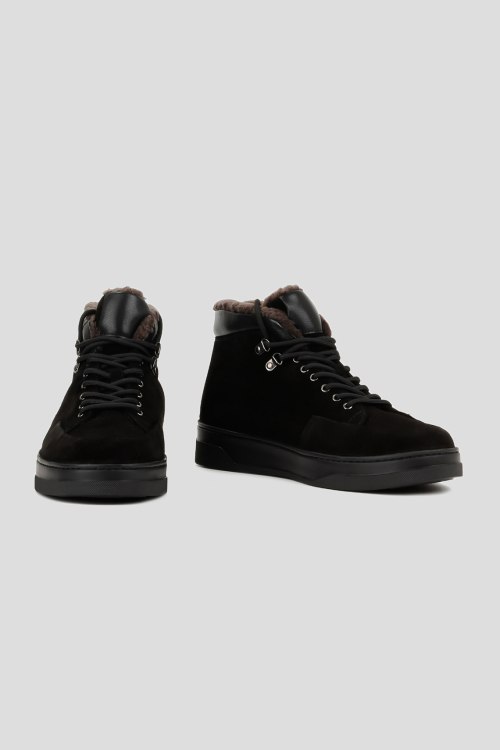 Детали: Мужские черные ботинки из натуральной замши от Le Berdes (Ле Бердес). Закругленный носок, спереди шнуровка, рельефная подошва в тон изделия, утепленная модель мехом. Замеры стельки: размер 39 (26,5 см), 40 (27 см), 41 (27,5 см), 42 (28 см), 43 (28,5), 44 (29 см), 45 (29,5 см)