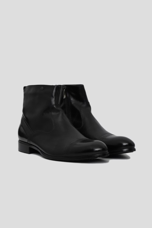 Детали: Мужские черные ботинки из кожи от Mario Bruni (Марио Бруни). Миндалевидный носок, сбоку застежка на молнию, утепленные натуральным мехом, маленький каблук, резиновая подошва