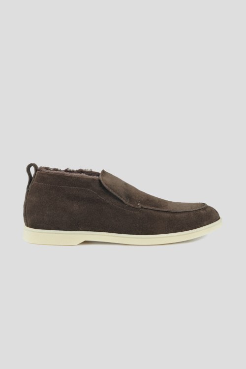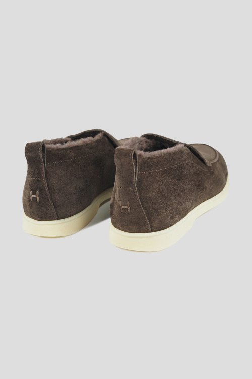 Детали: Мужские коричневые ботинки из натуральной замши от Henderson Baracco (Хендерсон Баракко). Закругленный носок, без застежки, модель утепленная мехом, петля для подтягивания, логотип бренда