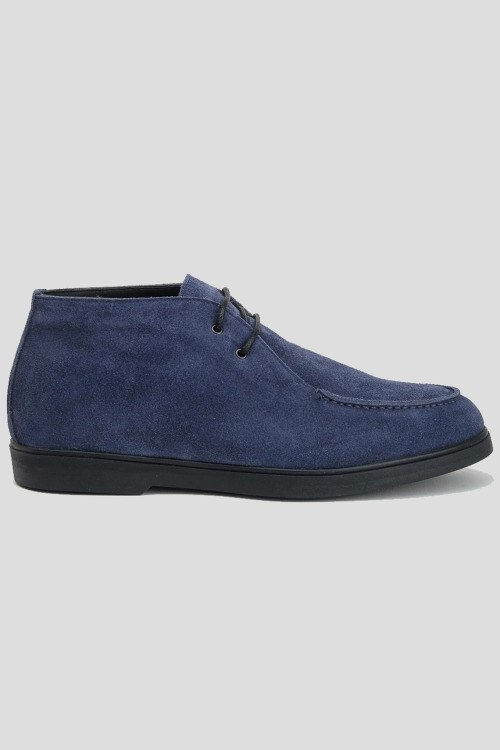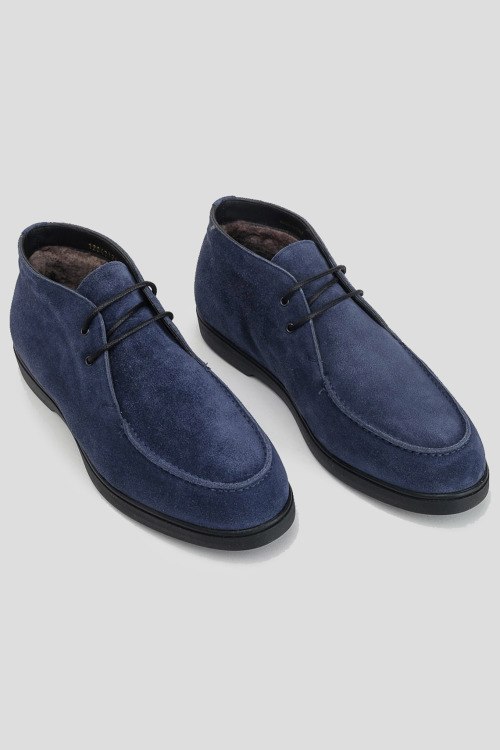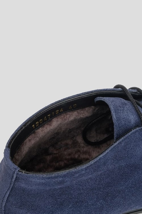Детали: Мужские синие замшевые дезерты на меху от Brecos (Брекоз). Классическая шнуровка, закругленный носок, черная подошва, внутри на меху