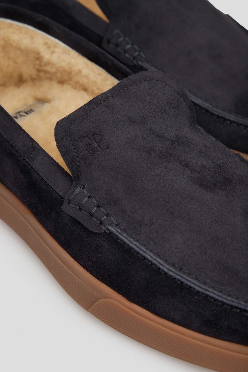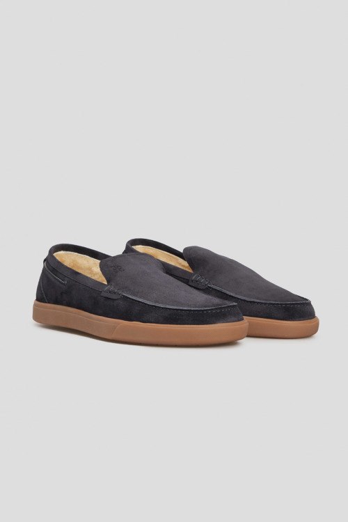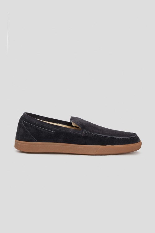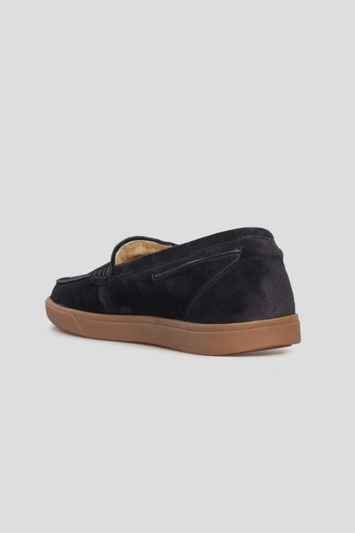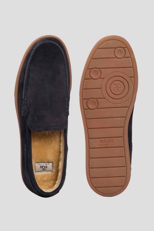 Детали: Мужские темно-синие лоферы из натуральной замши от Fabi (Фаби). Закругленный носок, модель утепленная мехом, резиновая подошва