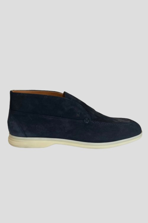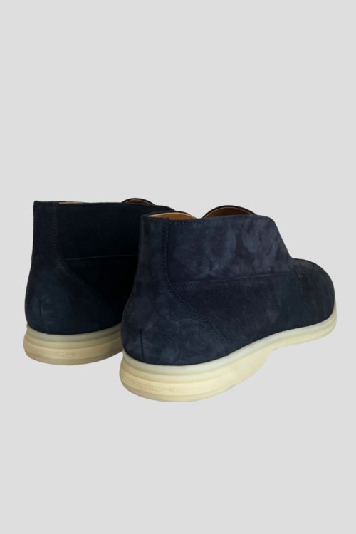 Мужские темно-синие ботинки из натуральной замши от Moreschi (Морески). Миндалевидный носок, модель без застежки, кожаная стелька