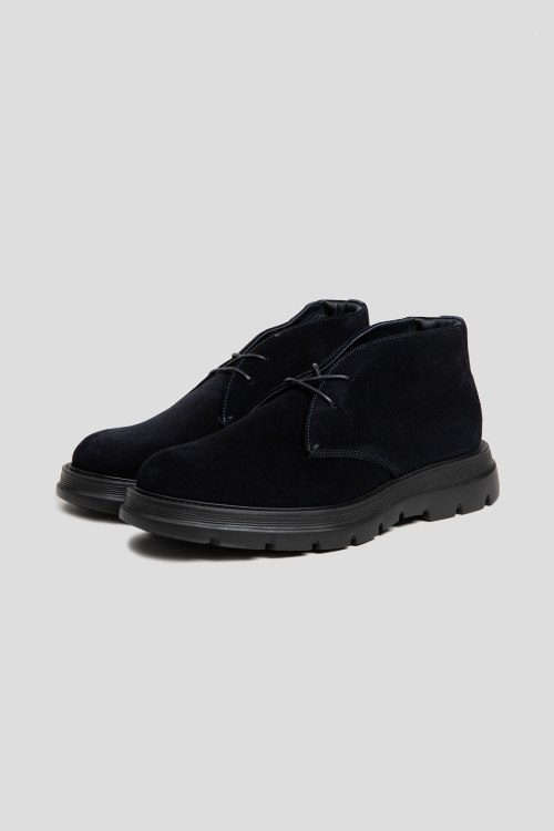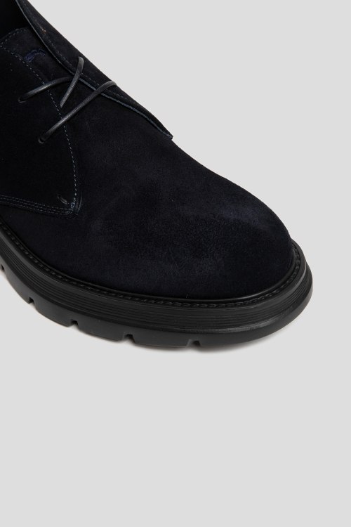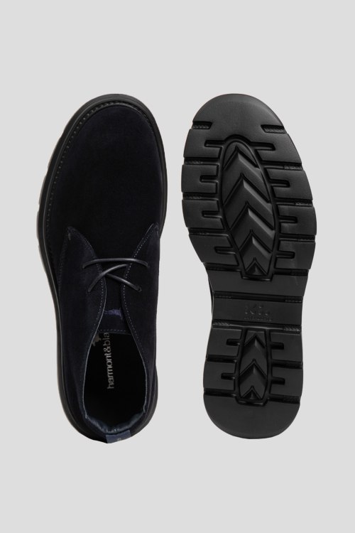 Детали: Мужские темно-синие ботинки из натуральной замши от Harmont & Blaine (Хармонт энд Блейн). Закругленный носок, спереди шнуровка, рельефная подошва, вышитый логотип