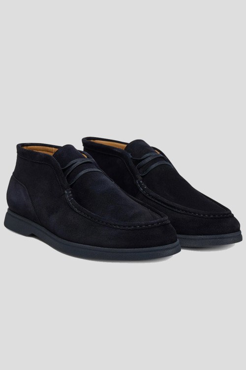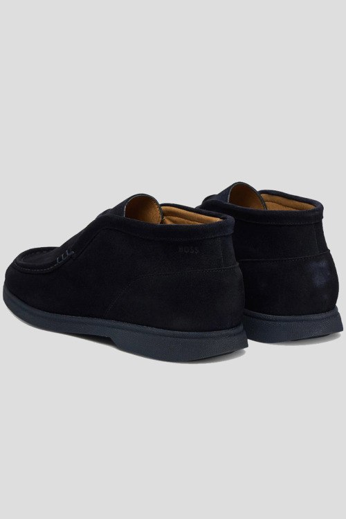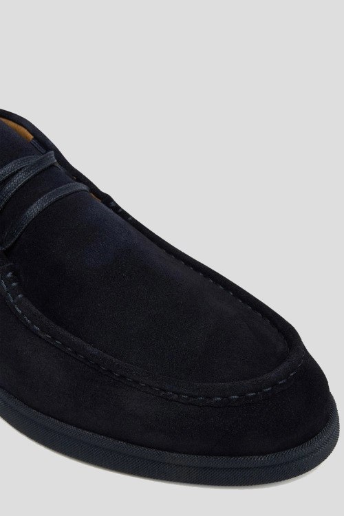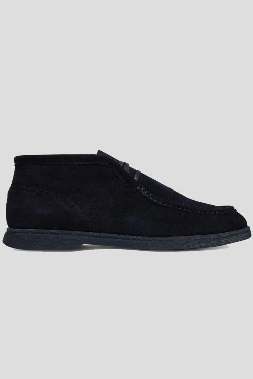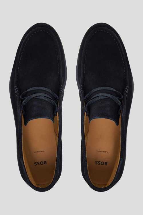 Детали: Мужские темно-синие замшевые дезерты Sienne от Hugo Boss (Хуго Босс). Модель из мягкой замши, тональная строчка, шнуровка, закругленный носок