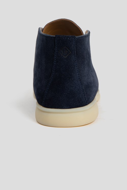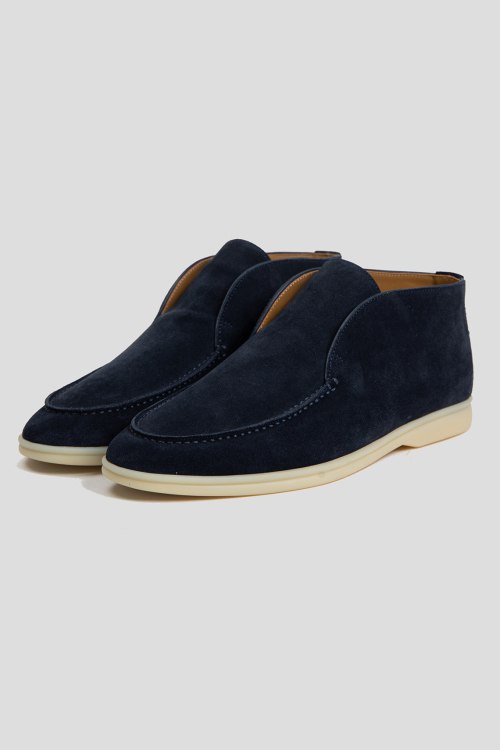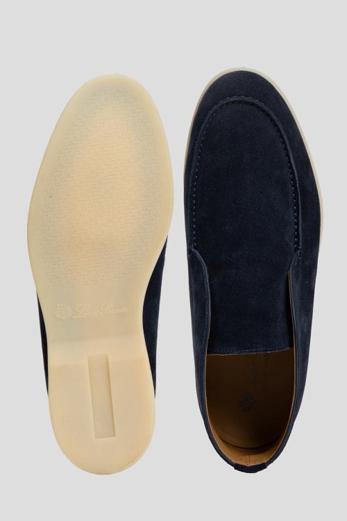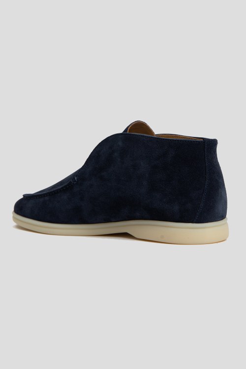 Мужские темно-синие дезерты из натуральной замши от Loro Piana (Лоро Пьяна). Миндалевидный носок, безе застежки, кожаная стелька (р.42 - 27.5 см).