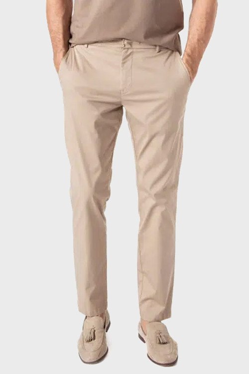 Детали: Мужские бежевые брюки Riley-27 из хлопкового микса от Bogner (Богнер). Классическая длина, средняя посадка, застежка на молнию и пуговицу, четыре кармана, петли в поясе для ремня