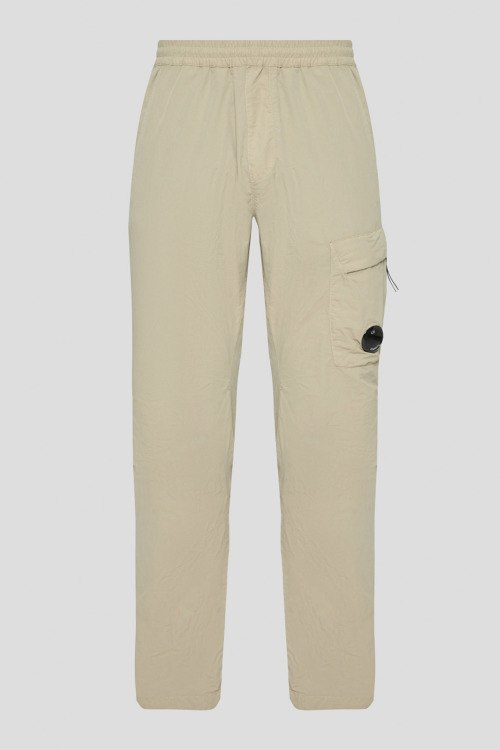 Детали: Мужские бежевые брюки-карго из полиамида от C.P. Company (СиПи Компани). Эластичная резинка на поясе, четыре кармана, патч-лого. Замеры: обхват пояса: для размера 50 - 84 см, обхват бедер: для размера 50 - 110 см, длина штанины: для размера 50 - 106 см, длина по шаговому шву: для размера 50 - 76 см