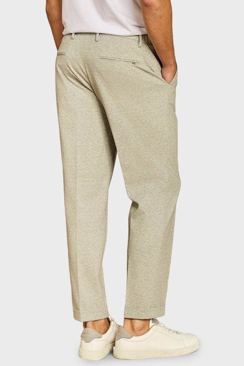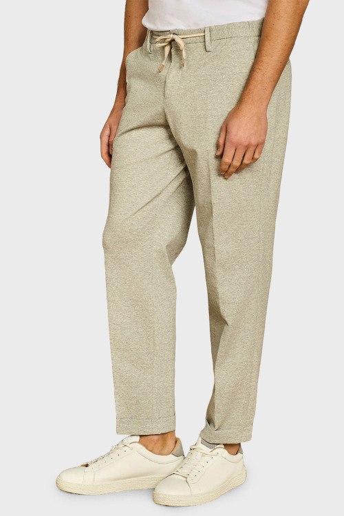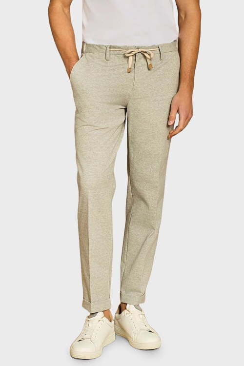 Детали: Мужские бежевые трикотажные брюки от Paul Taylor (Пол Тейлор). Дизайн со стрелками, боковые и задние карманы, пояс с петлями для ремня и на завязках, полная длина