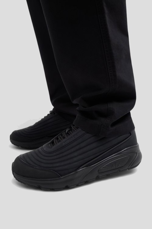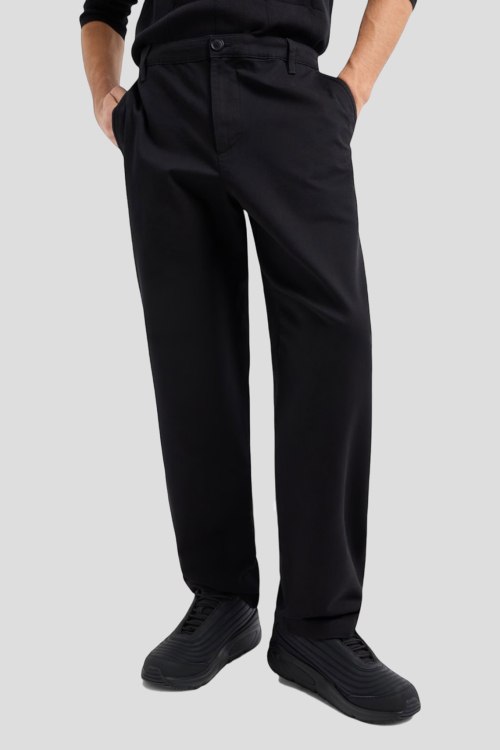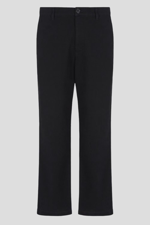 Детали: Мужские черные брюки из хлопкового поплина от Armani Exchange (Армани Эксчендж). Классическая длина, средняя посадка, застежка на молнию и пуговицу, прорезные карманы