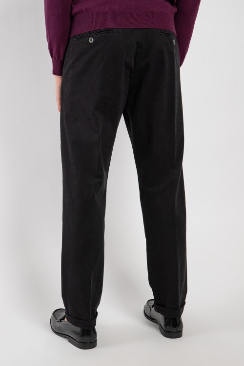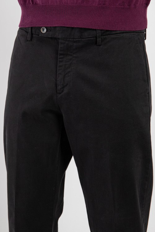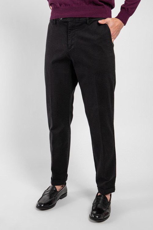 Детали: Мужские черные брюки из хлопка от Harmont & Blaine (Хармонт энд Блейн). Классическая длина, высокая посадка, застежка на молнию и пуговицы, четыре прорезных кармана, петли в поясе для ремня, манжеты с отворотом