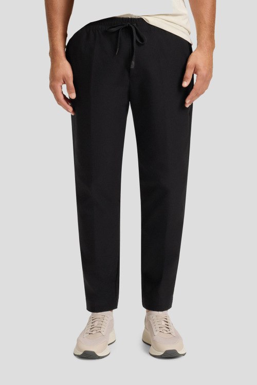 Детали: Мужские черные брюки из водоотталкивающей ткани T_Flex TekCo от Hugo by Hugo Boss (Хуго бай Хуго Босс). Дизайн со стрелками, эластичный пояс на завязках, боковые карманы, прямой крой, полная длина