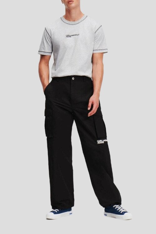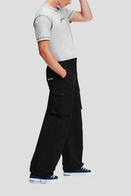 Детали: Мужские черные брюки из хлопкового микса от Karl Lagerfeld (Карл Лагерфельд). Полная длина, средняя посадка, застежка на молнию и пуговицу, расклешенная модель, накладные боковые карманы, два прорезных кармана, петли в поясе для ремня, логотип бренда