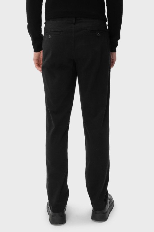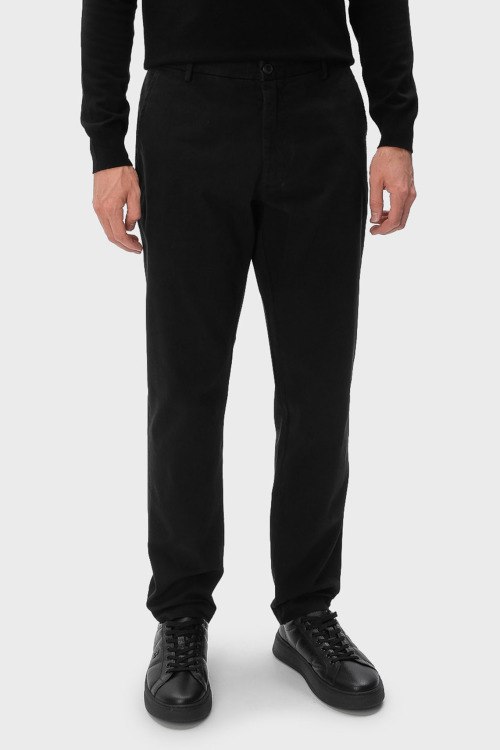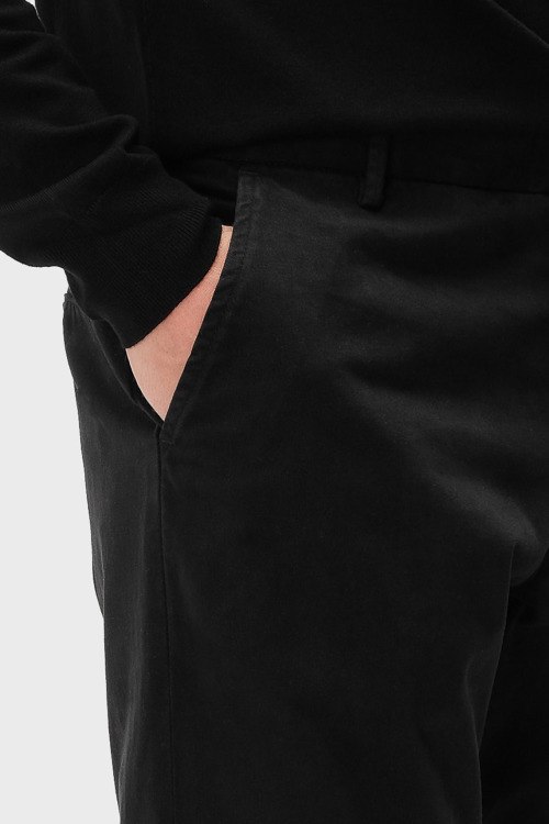 Детали: Мужские черные хлопковые брюки от Trussardi (Труссарди). Боковые и задние карманы, пояс с петлями для ремня, прямой крой, полная длина