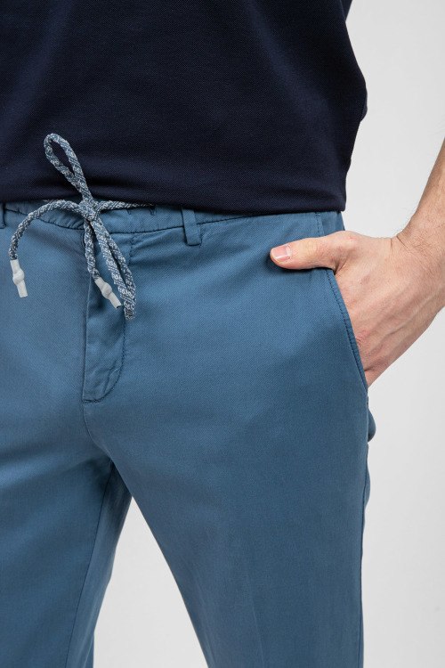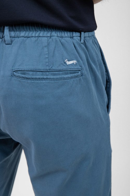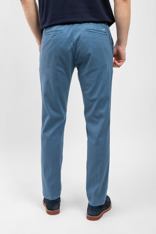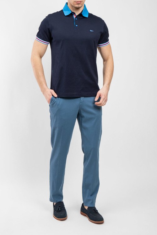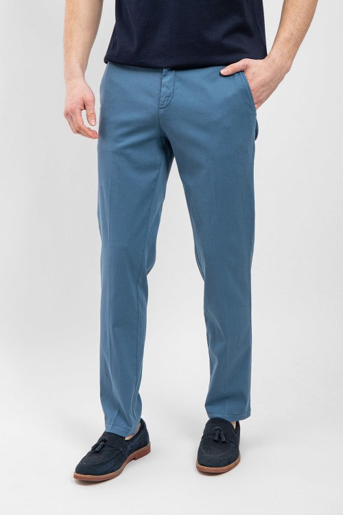 Мужские голубые брюки из хлопкового микса от Harmont & Blaine (Хармонт энд Блейн). Классическая длина, застежка на молнию и пуговицу, кулиска в поясе, прорезные карманы, вышитый логотип бренда, петли для ремня.