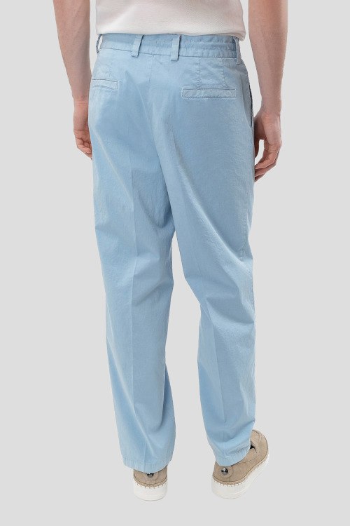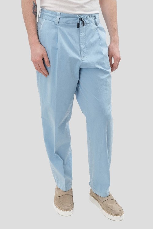 Детали: Мужские голубые хлопковые брюки от Hugo by Hugo Boss (Хуго бай Хуго Босс). Пояс с петлями для ремня и на завязках, боковые и задние карманы, прямой крой, полная длина
