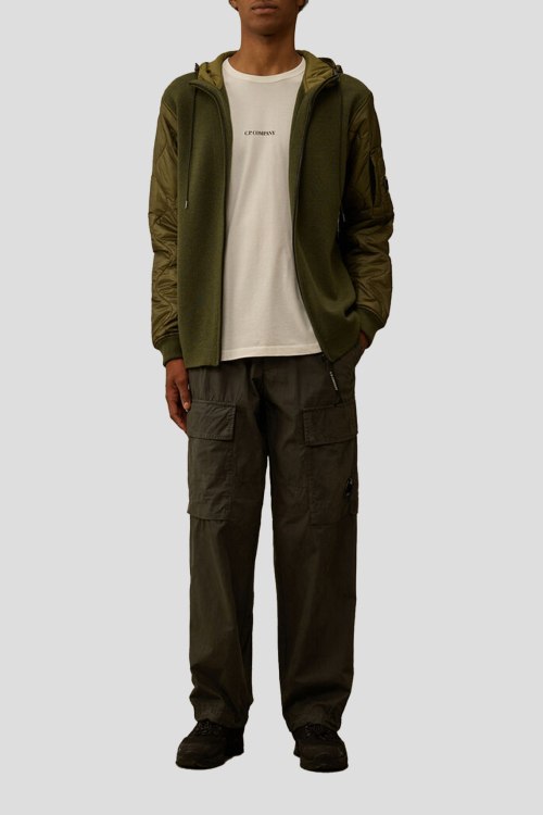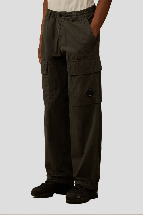 Детали: Мужские хлопковые брюки-карго цвета хаки от C.P. Company (СиПи Компани). В поясе с петлями для ремня, боковые карманы, накладные карманы-карго, свободный крой, полная длина